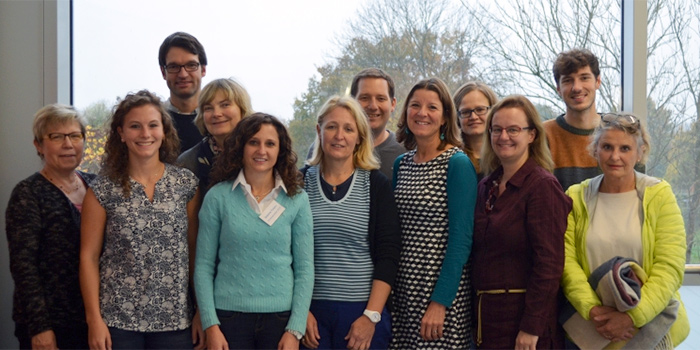 Bildunterschrift: Aufbruchsstimmung am ersten „Schultag“. Der neue Studiengang stellt auch hohe Anforderungen an die Lehrenden. Hintere Reihe von links: Dr. Thomas Riecke-Baulecke, Daniela Rzejak (2.v.l.), Prof. Dr. Jürg Kramer (4.v.l.), Prof. Dr. Aiso Heinze (6.v.l.), Dr. Larissa Zwetzschler (8.v.l.). Vordere Reihe von links: Prof. Dr. Bärbel Barzel (2.v.l.), Dr. Maike Abshagen (3.v.l.), Dr. Thomas Lange (4.v.l.), Prof. Dr. Anke Lindmeier (5.v.l.), Prof. Dr. Frank Lipowski (7.v.l.).