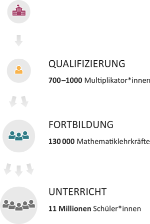 Insbesondere die wirksame Unterstützung und Qualifizierung von Multiplikatorinnen und Multiplikatoren steht im Fokus der Arbeiten des DZLM mit dem Ziel, gemeinsam mit den Verantwortlichen der Steuerungsebene fachbezogene Fortbildungs- und Qualifizierungskonzepte breitenwirksam umzusetzen.